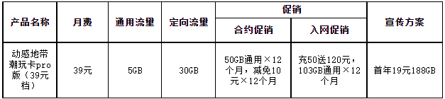 1、产品为基于“动感地带潮玩卡pro版(39元档)”增加12个月合约期的合约产品,合约期内29元/月,享每月50GB国内(除港澳台地区)通用流量叠加,合约期从用户新入网当月起生效,合约期结束后合约自动失效,基础资费保留。
