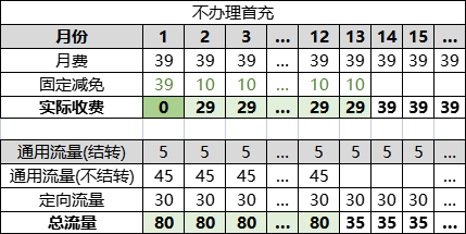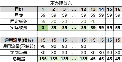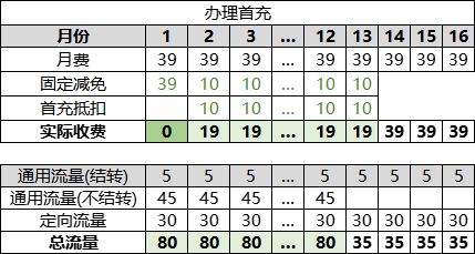 - 优惠五:(不选)二充优惠。39档+首充,次月19元不推荐(二充保底28元)