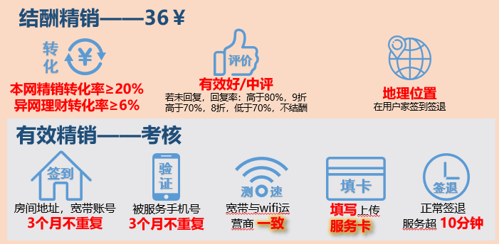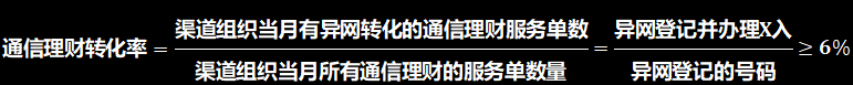- 每50笔做通信理财的异网测速单中,有3笔测速单有拓客/迎回(通信理财转化率≥6%)